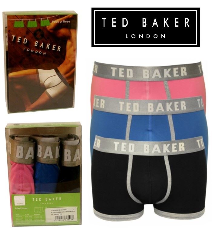 3 MENS TED BAKER BOXERSHORTS / TRUNKS PINK/BLUE/BLACK