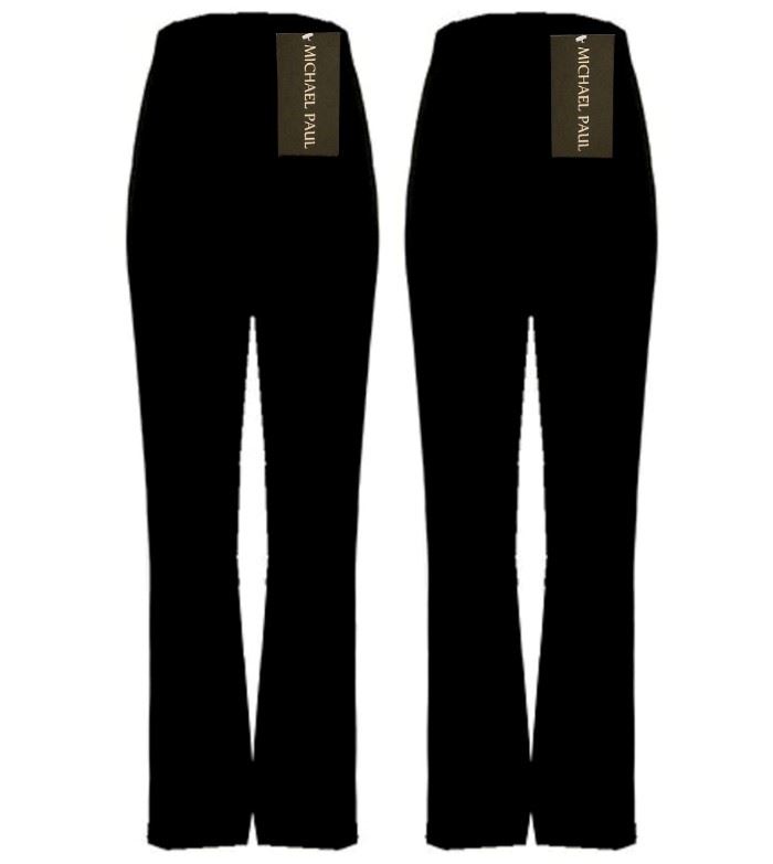 MICHAEL PAUL LADIES PACK OF 2 FINELY RIBBED BOOTLEG STRETCH BLACK TROUSERS