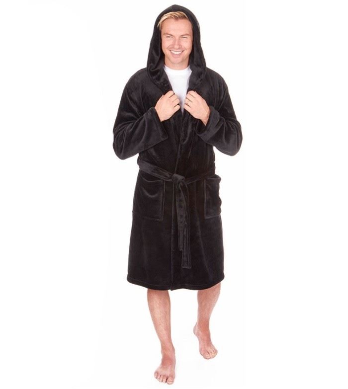 MICHAEL PAUL MEN'S HOODED PLAIN DRESSING GOWN BLACK