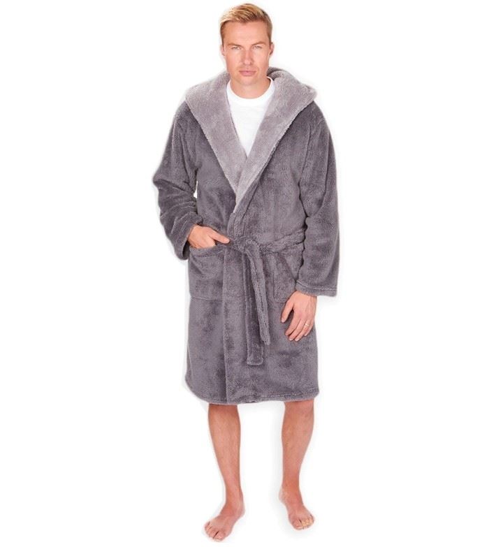MICHAEL PAUL MEN'S HOODED SNUGGLE DRESSING GOWN GREY