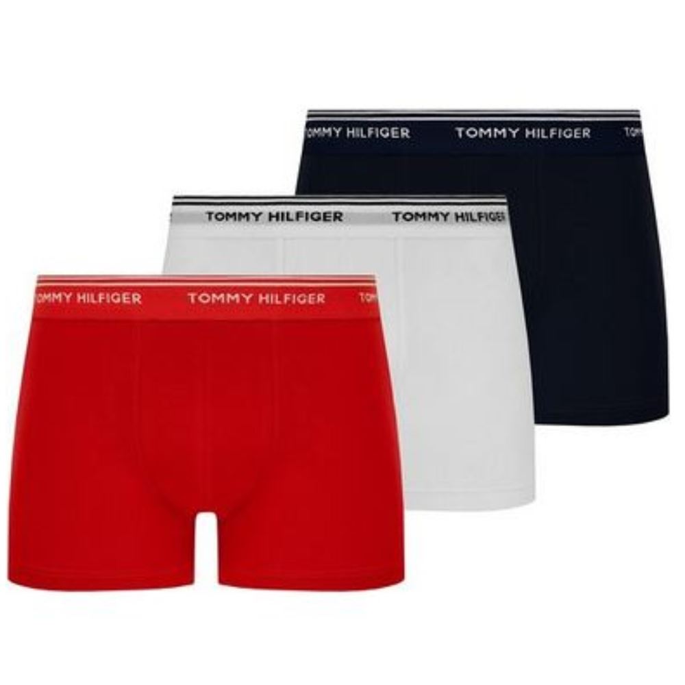 TOMMY HILFIGER 3 PACK COTTON/ELASTANE BOXER TRUNKS TangoRed (Navy/Red/White)
